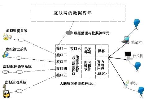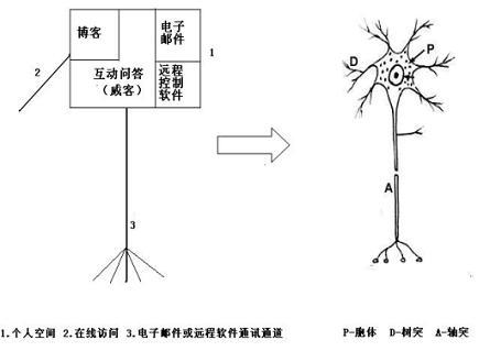 在相關(guān)論文中,我們也繪制了更為詳細的互聯(lián)網(wǎng)映射型虛擬神經(jīng)元,它是以目前互聯(lián)網(wǎng)個人空間應(yīng)用為基礎(chǔ),擴充并預(yù)言了成熟后的互聯(lián)網(wǎng)神經(jīng)元結(jié)構(gòu)。