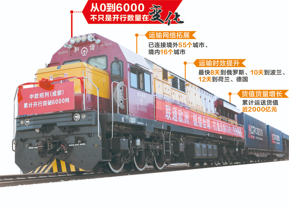 昨日,伴隨著一聲響亮的鳴笛,一列滿載電子產品、日用百貨、醫(yī)用口罩、花卉等貨物的列車從成都國際鐵路港駛出發(fā)往荷蘭蒂爾堡,這是中歐班列(成都)累計開行的第6000列,中歐班列(成都)累計開行量也在全國率先突破6000列。