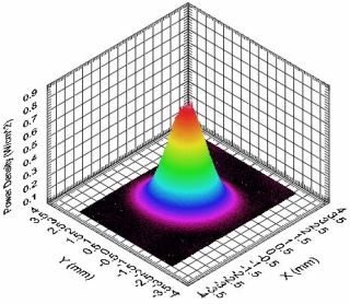 2013年10月,電子所實現了國內首次DPAL銫激光輸出,激光輸出功率394mW,光光效率7.4%,實驗光路如圖2-9所示。對各項參數進一步優(yōu)化后,所得輸出激光具有極好的光束質量,光束功率密度分布如圖2-10所示。激光器光束質量M2因子接近1。實驗證明了DPAL在光束質量方面的潛力是極大的。