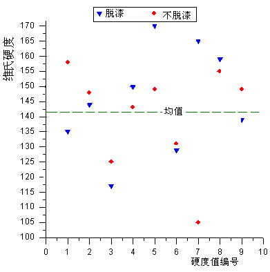 最后采用顯微硬度計,測量樣品除漆前后的維氏硬度(HV)。測量結果如圖3-7所示,可以發(fā)現,在高于均值的樣品中,除漆的有5個,未除漆的有6個,并且分布表現出無規(guī)律性,所以飛機蒙皮經過激光除漆后維氏硬度并沒有明顯差別。