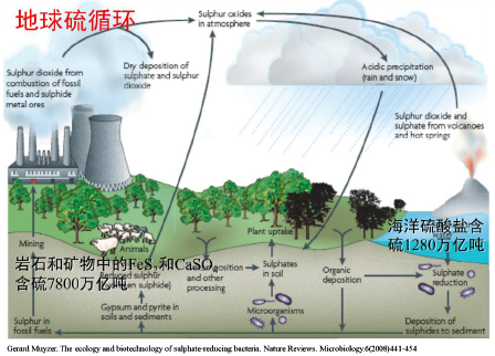 硫磺是重要化工原料,我國(guó)是硫磺消耗大國(guó)也是進(jìn)口大國(guó),2017年我國(guó)硫磺進(jìn)口達(dá)1123.6萬(wàn)噸,產(chǎn)量590萬(wàn)噸。硫循環(huán)是地球三大物質(zhì)循環(huán)之一,硫各種價(jià)態(tài)間轉(zhuǎn)化的實(shí)現(xiàn)均由硫細(xì)菌來(lái)完成(圖1-1)。