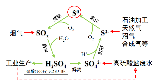 化學(xué)原料與制品、石化、醫(yī)藥、農(nóng)藥、染料化工、焦化、造紙等生產(chǎn)過(guò)程,硫及其硫的不同形式產(chǎn)物被廣泛應(yīng)用,目前我國(guó)每年消耗硫酸超過(guò)1億噸,硫酸鹽廢水排放體量巨大,工業(yè)生產(chǎn)過(guò)程每年產(chǎn)生大量的SO2,這些物質(zhì)最終以不同的形式硫進(jìn)入生產(chǎn)廢水和固廢中。其中含硫廢水是最主要的硫污染源,這類工業(yè)廢水有機(jī)污染物濃度高、產(chǎn)生量大、污染物組分復(fù)雜,廢水中含有多種難降解化學(xué)物質(zhì)和毒性物質(zhì),廢水難生化降解。