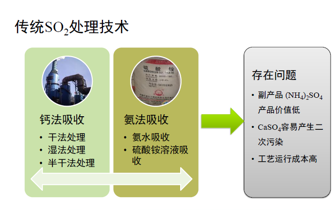 圖1-3 傳統(tǒng)SO2處理技術(shù)及其存在的問(wèn)題