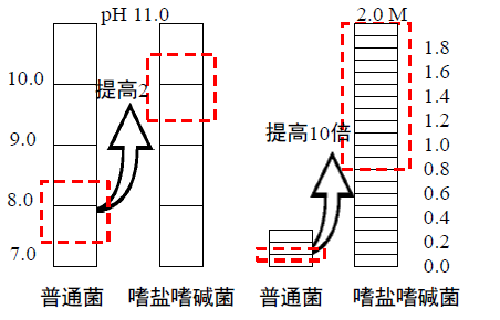 針對(duì)新型的嗜鹽嗜堿硫氧化系統(tǒng),我們自行篩選了嗜鹽嗜堿極端微生物,并敲除降低單質(zhì)硫產(chǎn)生的基因途徑,對(duì)其進(jìn)行遺傳基因改造。該微生物可在較高的pH值和鹽度范圍內(nèi)生長(zhǎng),相對(duì)普通菌群的耐受能力大大提高(圖1-4)。